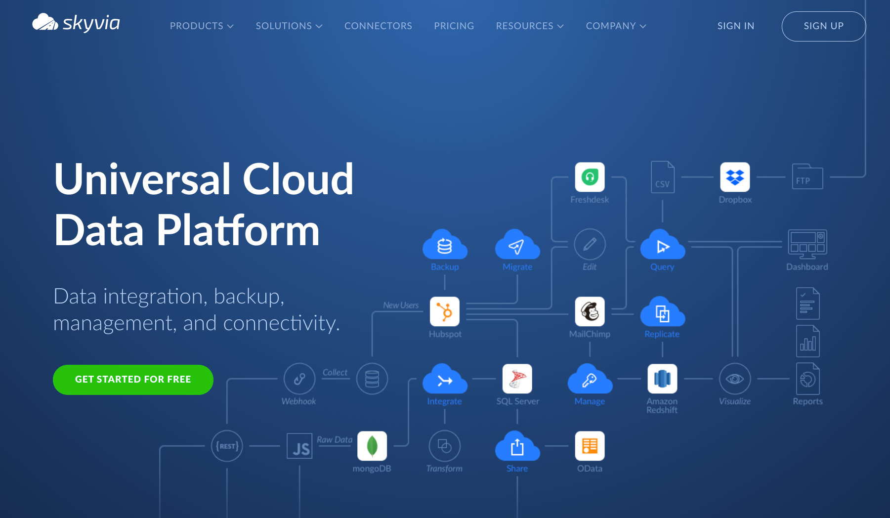 Skyvia создан специально для data-маньяков. Тут есть почти любые хитровороты с любым количеством данных откуда угодно. Там имеется Salesforce Skyvia, которая обеспечивает прямой обмен данных между облачными приложениями и базами данных, двунаправленную синхронизацию, импорт/экспорт CSV, отображение данных из SaaS и баз данных по протоколу OData. Если вы хоть что-то из этого поняли, то, скорее всего, вам этот инструмент пригодится. Нравится, что максимально кроссплатформенный. Минусы: чёрт ногу сломит, пока разберётся во всех перипетиях.