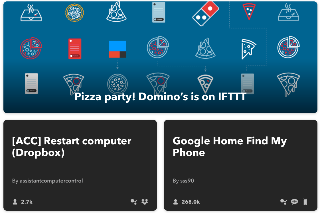 С другой стороны, сервис интегрирован с более чем 500 приложениями, включая Instagram, Gmail, Google Drive, Twitch, Twitter и Telegram. Также есть поддержка физических устройств. А база пользовательских триггеров поможет создать карточки для самых популярных действий.