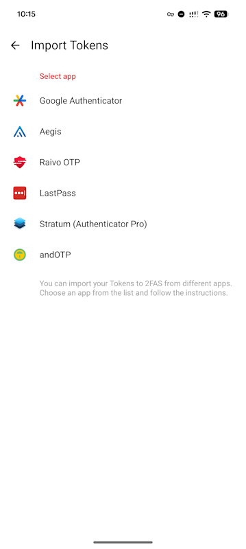 Импортировать существующие токены можно из Google Authenticator, Aegis, Raivo OTP, LastPass, Stratum и andOTP. Правда, импорт потребует некоторого времени, т.к. коды всё равно придётся добавлять поштучно.