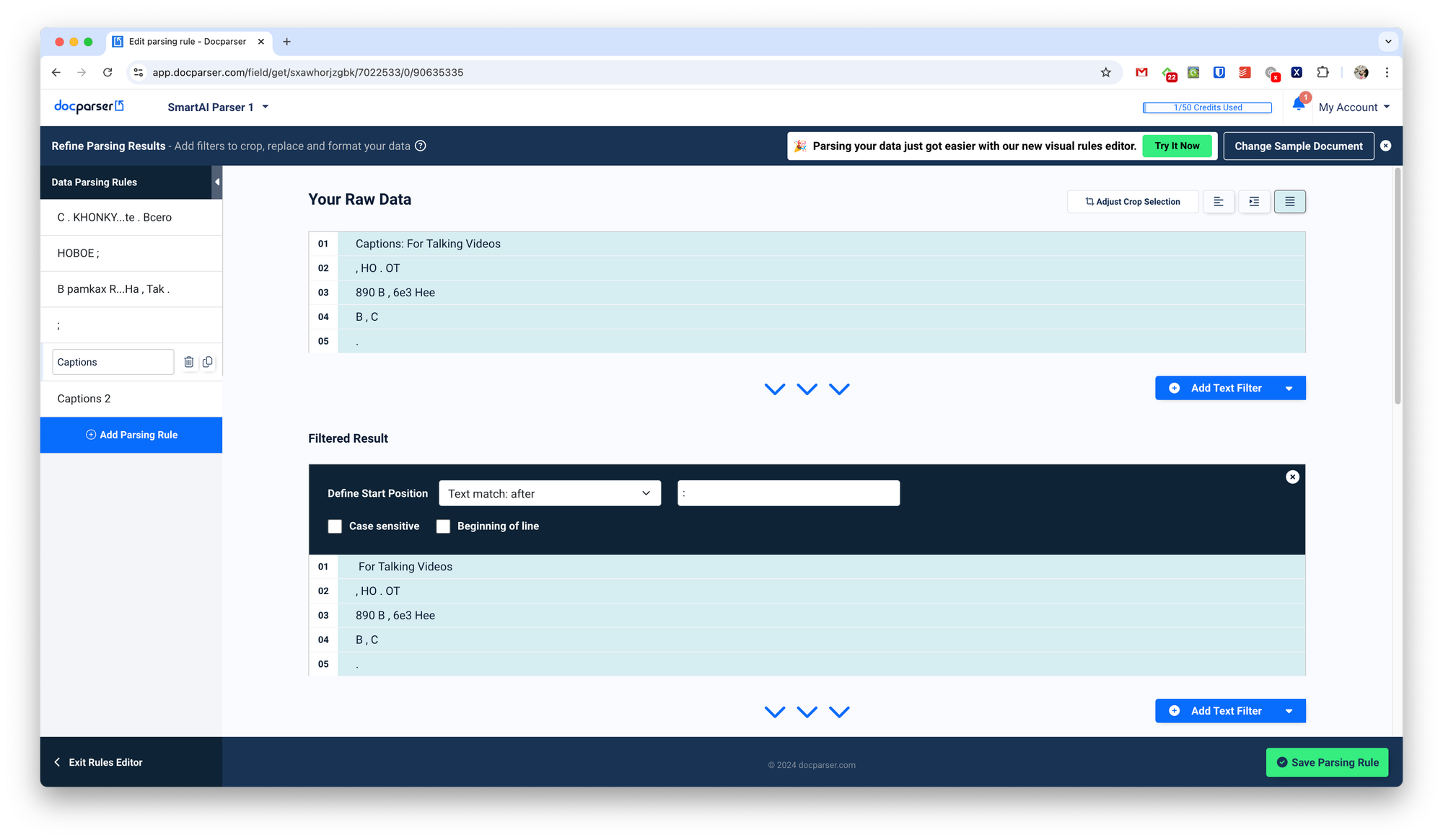Если вы ищете максимально простой с точки зрения настройки парсер, то я бы выбрал Parseur. Вы можете буквально протыкать все параметры не глядя и получить на выходе приличный результат. Правда, стоит учесть, что всё же сервис больше предназначен для распознавания файлов из писем, чем из ручной загрузки.