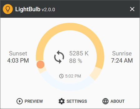 Тоже с открытым исходным кодом. Чуть хуже, чем предыдущая утилита, но всё нужное имеется. Настраиваете местоположение или часовой пояс, и наслаждаетесь автоматической работой. Вообще, автоматическое переключение очень спасает, так как за работой вы, сами того не замечая, долгое время смотрите на монитор напряжённым взглядом. Релакс. Вам должно быть комфортно. Кстати, только для Windows. Сорян.