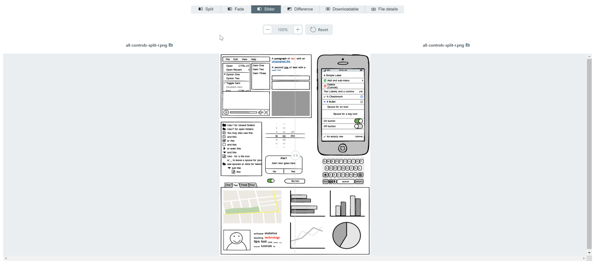 Первым в списке идёт сервис под названием Diffchecker. Он помогает сравнить не только изображения, но и текстовые файлы и даже папки. Есть платная и бесплатная версия.