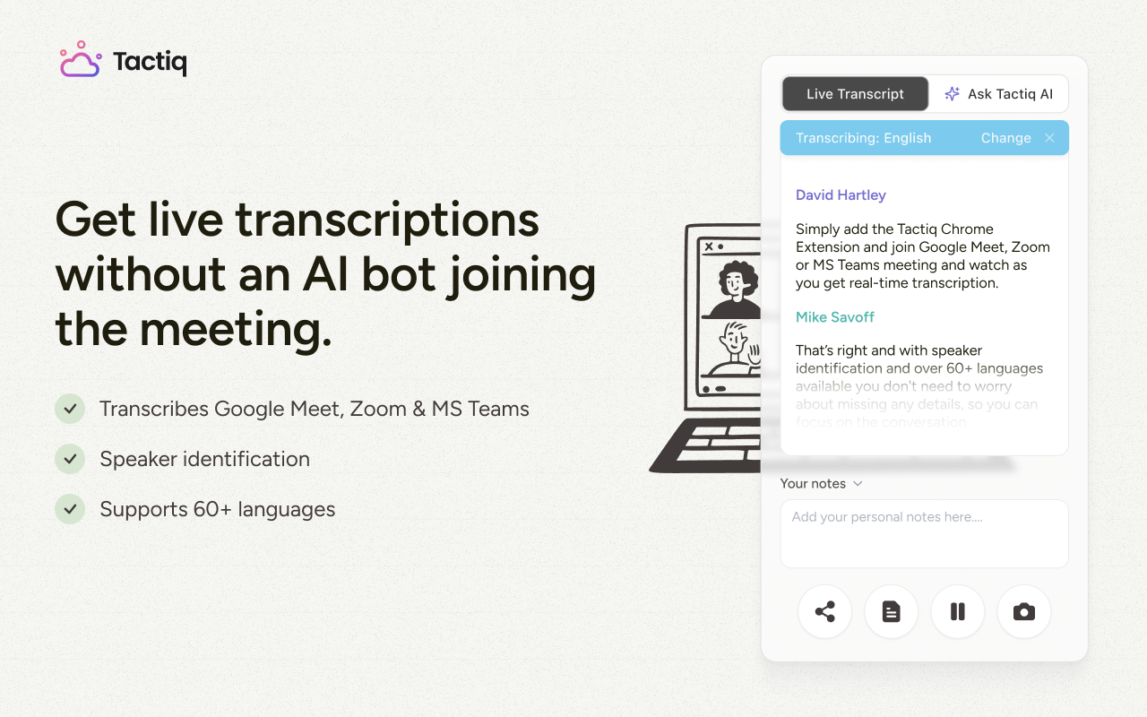 Это Chrome-расширение для Google Meet. В отличие от предыдущих инструментов, здесь вам не надо подключать к встрече никаких сторонних ботов.