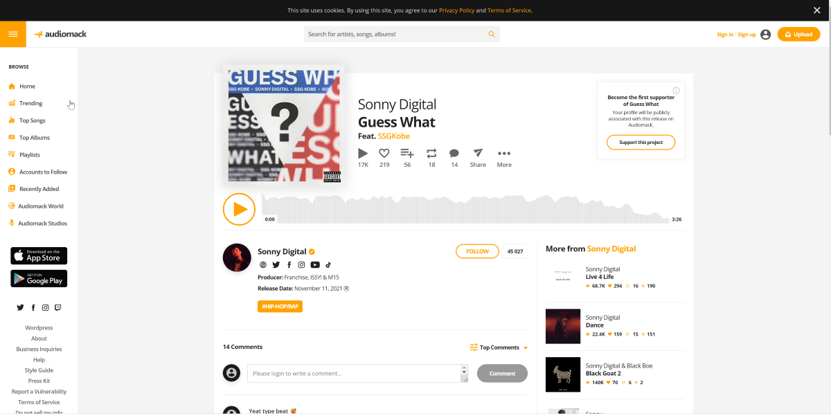 Из минусов — слушать музыку без регистрации нельзя. Из плюсов — фанаты могут донатить на ваше развитие.