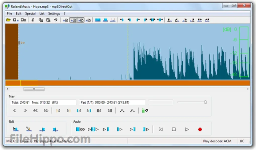 С его помощью можно не только разделить трек, но и воспользоваться вспомогательными средствами, вроде аудиографа и изменения масштаба таймлайна. Поддерживаются популярные форматы, включая MP3, MP2, RAM, WAV и другие. Есть различные типы разделения: