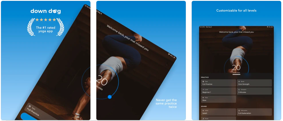 Отличное решение для тех, кто решил самостоятельно заниматься йогой. Круто то, что вы можете настроить под себя каждый аспект тренировки (уровень, темп, продолжительность занятия, голос аудиотренера и т.д.).
