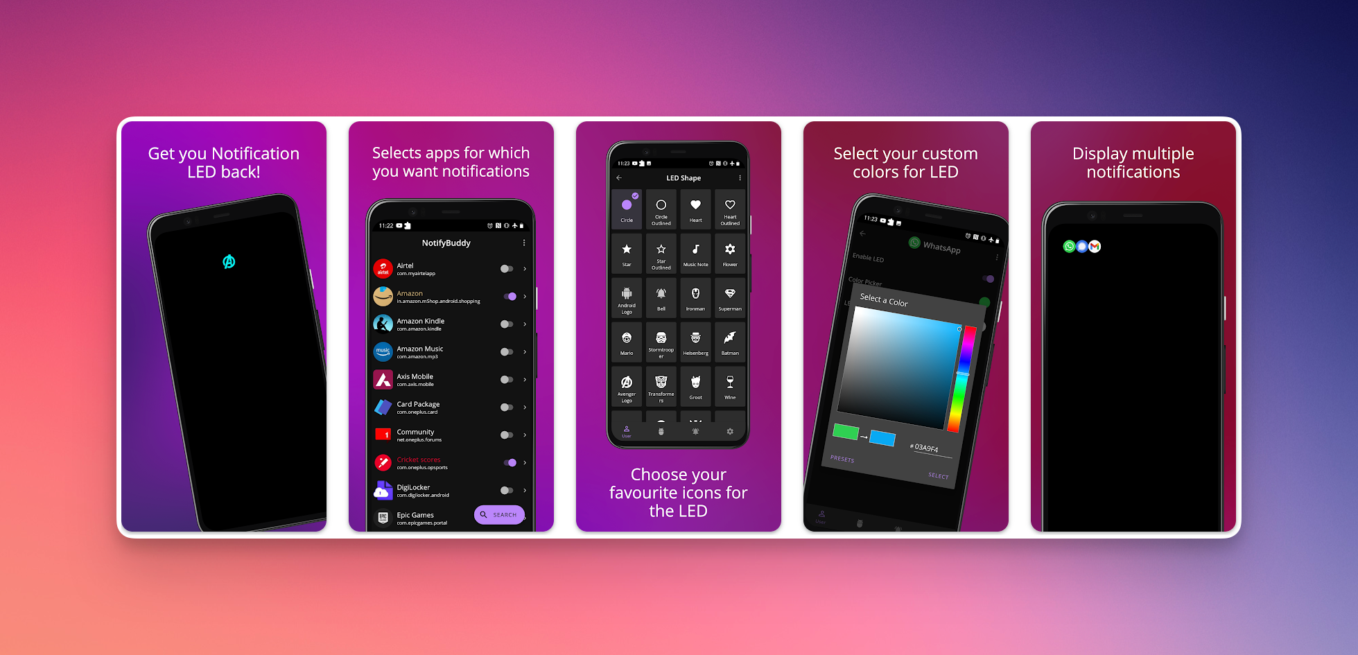 В дружелюбном интерфейсе это приложение предлагает богатый выбор возможностей по улучшению оповещений. Одна из главных — активация оповещения в стиле LED-огонька на экране смартфона. Кроме этого, можно настроить индивидуальные оповещения для каждого приложения, ярлыка, параметра устройства.