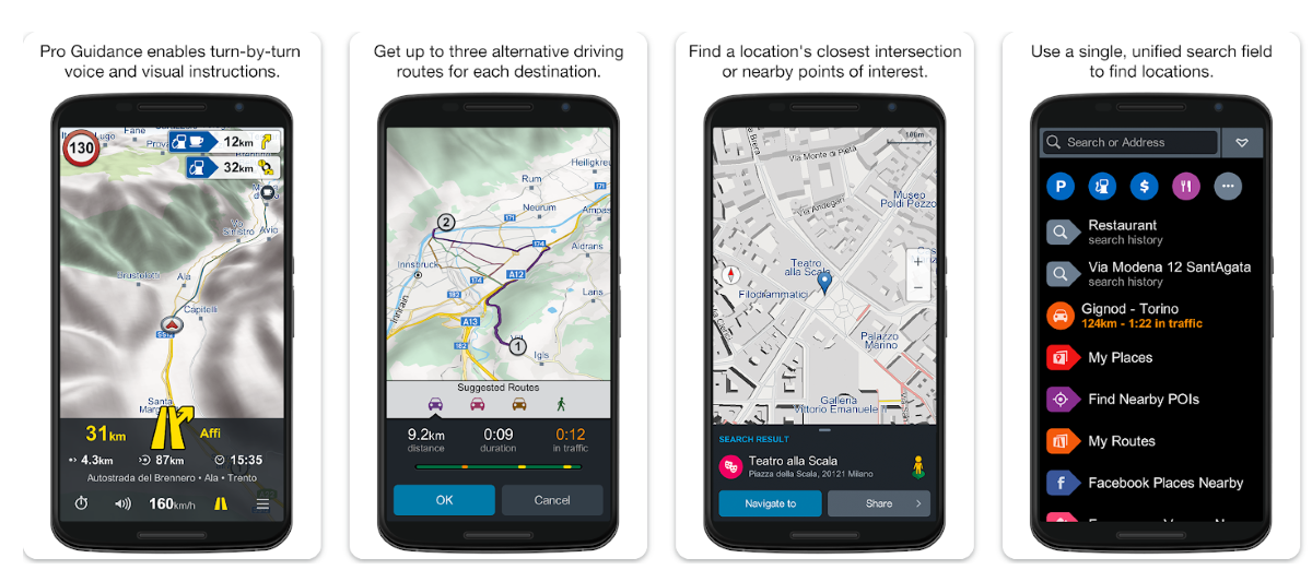В офлайн-режиме вам доступен поиск, голосовая навигация, перестроение маршрута и информация об общественном транспорте и городской инфраструктуре, типа банкоматов и точек доступа в интернет. Карты сделаны на основе OpenStreetMap.