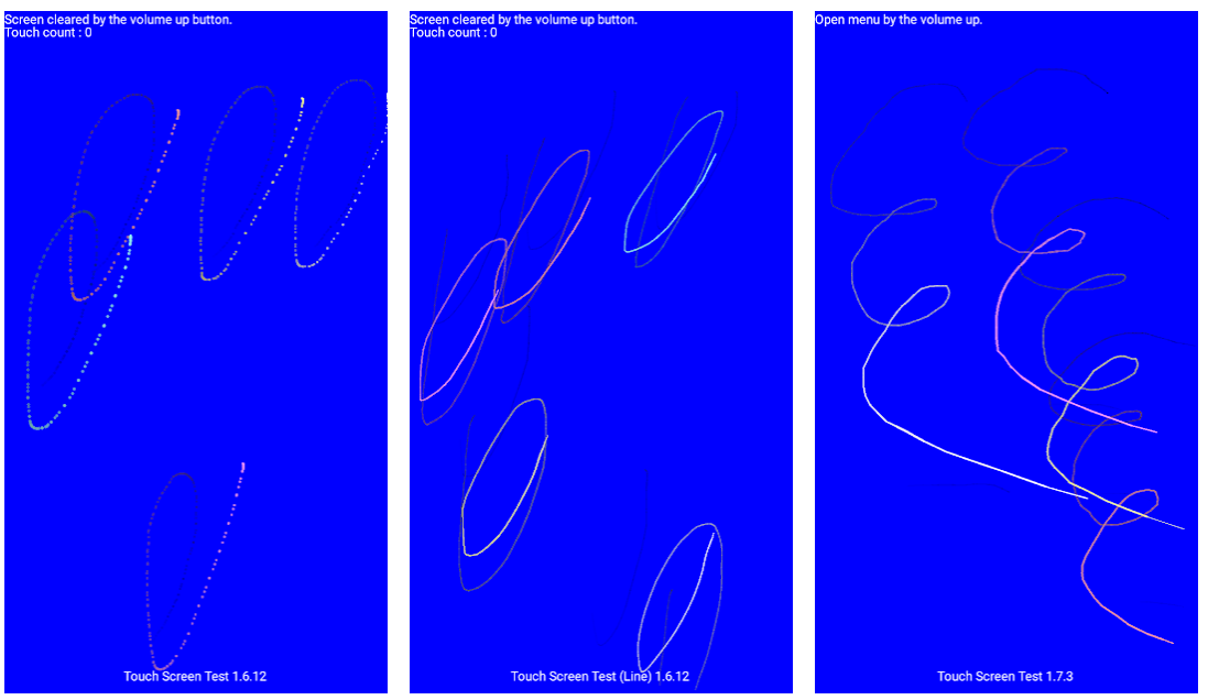 Поскольку данное приложение предназначено для тестирования сенсорных экранов, вы не сможете перемещаться по его меню в привычной манере. Чтобы меню появилось на экране, нужно нажать на телефоне кнопку увеличения громкости. Для прокручивания менюшки воспользуйтесь кнопкой уменьшения громкости, затем уже можно выбрать нужную опцию — вновь с помощью кнопки увеличения громкости. Всё это не очень интуитивно понятно, но теперь вы знаете, как управлять этим приложением, а значит, трудностей у вас не возникнет.