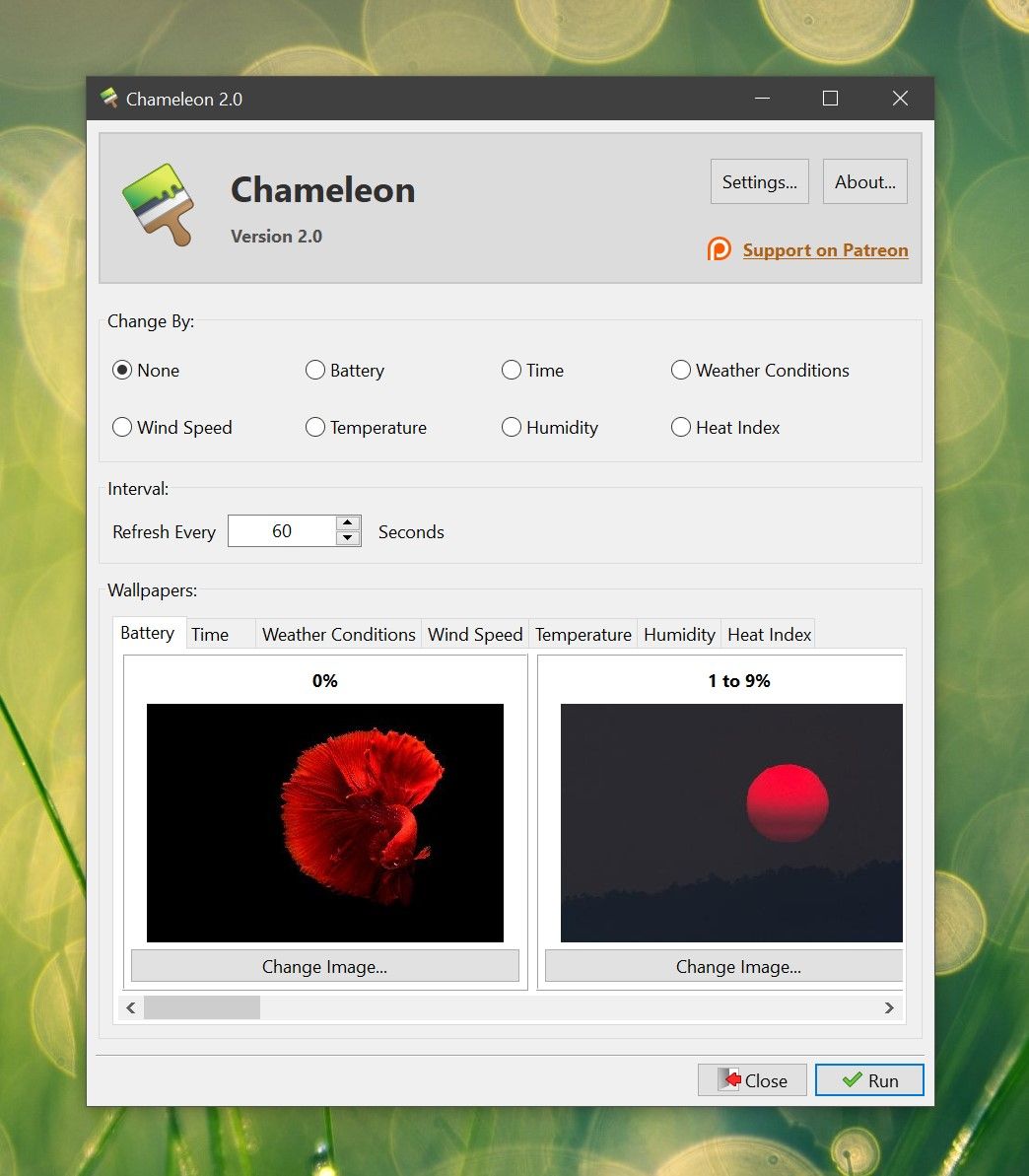 С этим приложением ваш десктоп будет меняться в зависимости от текущего заряда батареи, времени суток и погодных условий. Коллекция «Хамелеона» состоит из высококачественных настраиваемых 4K обоев. Просто распакуйте их в ту же папку, где находится исполняемый файл программы.