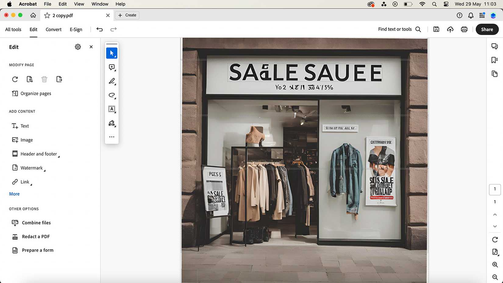Чтобы исправить текст на картинке, вам нужно сначала преобразовать её в формат PDF. Затем загрузите этот файл в Acrobat и нажмите на панели инструментов Редактировать PDF. Программа должна автоматически обнаружить любой текст на изображении. После чего вы можете легко исправить всю абракадабру, а также выбрать размер и шрифт текста, выровнять его и т.д.