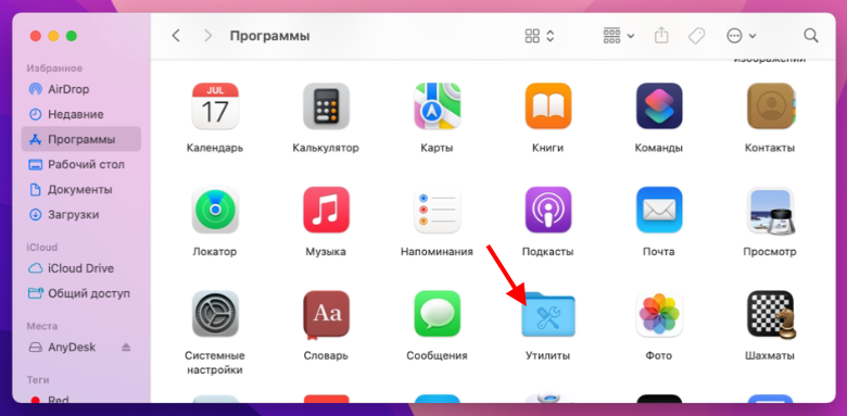 Откройте Finder, выберите пункт Программы и откройте папку Утилиты.