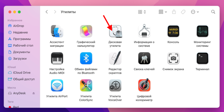 Здесь вы найдёте приложение под названием «Дисковая утилита».