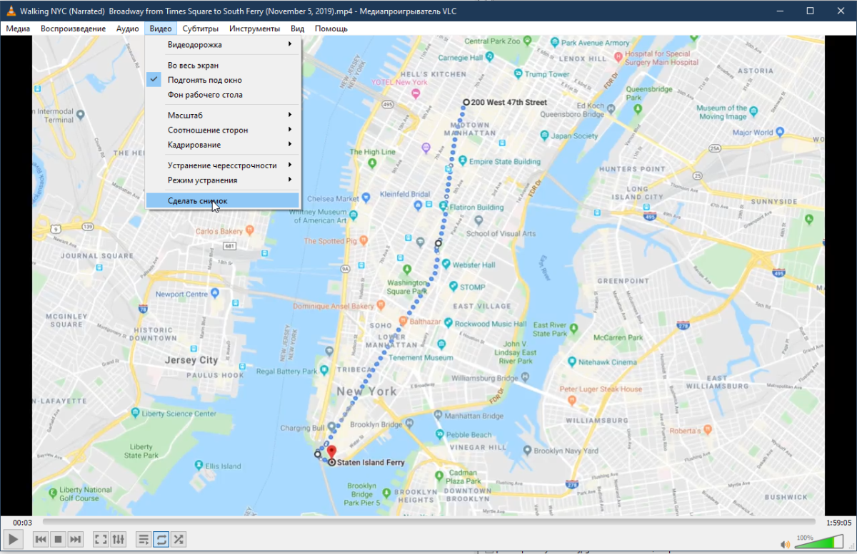 Он не такой комплексный в сравнении с утилитами выше, но всё же решает возложенную на него задачу. Вам просто нужно поставить видео на паузу и выбрать в меню пункт Сделать снимок. Кадр тут же окажется в буфере обмена.
