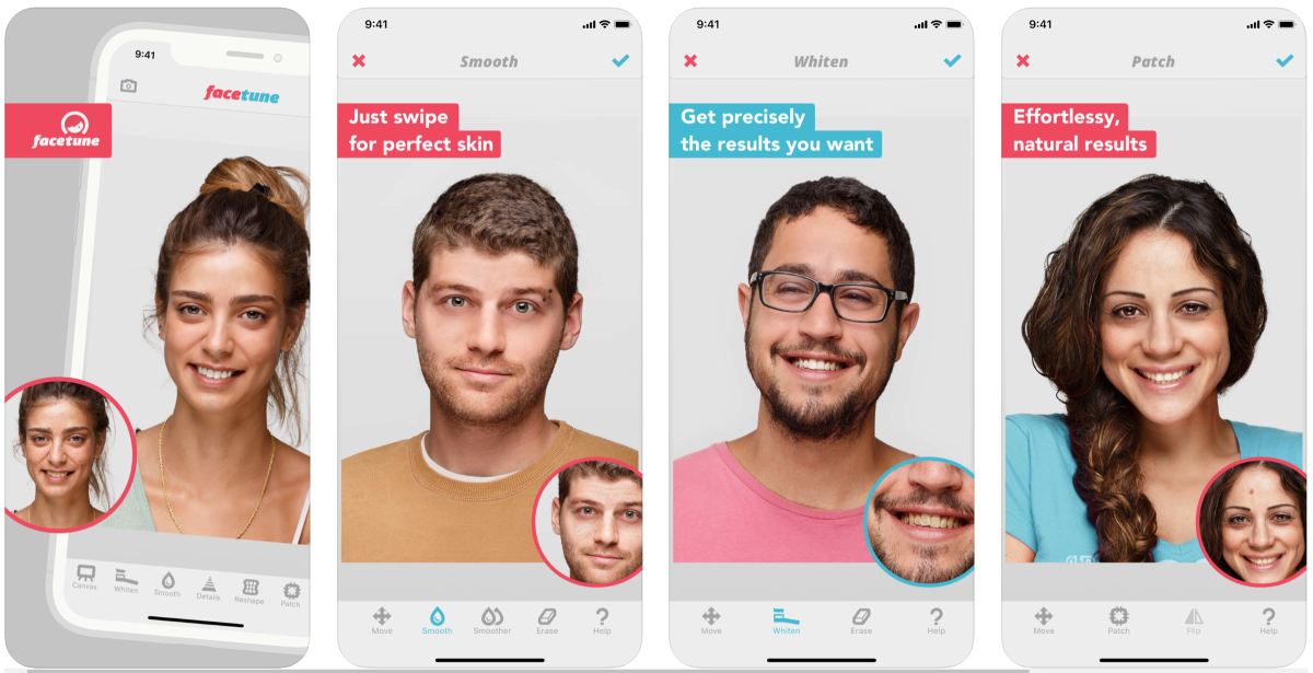 Стыдитесь своих мимических морщин? Пятна на лице вгоняют вас в тоску? Не переживайте, Facetune уже здесь! Возьмите фотографию и начните делать «макияж». С помощью входящего в это приложение инструмента «Smooth» вы сможете удалить нежелательные веснушки, скрыть дефекты кожи или спрятать мешки под глазами. Более того, теперь в ваших силах подкорректировать кривой нос или безобразную линию подбородка — для этого понадобится инструмент «Reshape». И наконец, инструмент «Tone» поможет сделать тонкие настройки цвета лица.