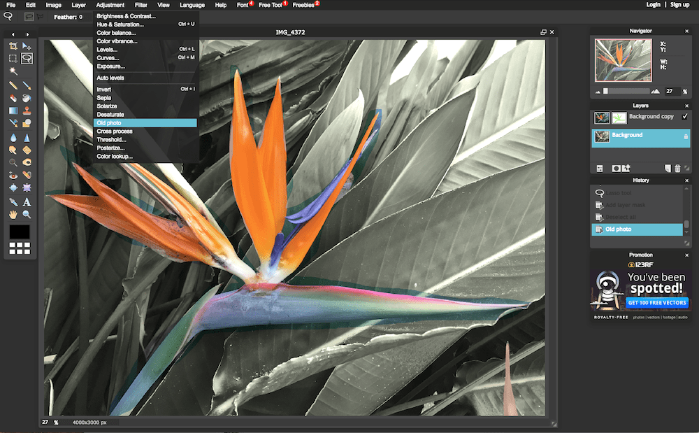 Pixlr претендует на звание «самого популярного онлайн-редактора фотографий в мире». Связано это не только с тем, что он бесплатный. Этот редактор может похвастаться более чем 600 эффектами и позволяет вам делать всё то, что вы ожидаете от фоторедактора: от обрезки и изменения размера до удаления эффекта красных глаз и отбеливания зубов. Если вы привыкли использовать Photoshop, вам понравится пользовательский интерфейс Pixlr, так как он очень похож на фотошоповский.