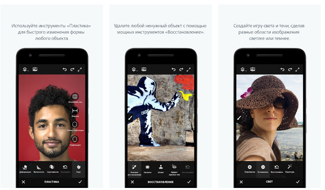 С помощью Photoshop Fix вы сможете легко выполнять самые распространённые операции с изображениями прямо на своём смарт-устройстве, не перенося фотографии на стационарный компьютер и не используя дорогостоящее программное обеспечение для редактирования. В ваших руках теперь будут инструменты для ретуширования, восстановления, осветления, окрашивания и корректировки ваших изображений, что позволит вам довести их до совершенства. Вы также можете экспериментировать с инструментами рисования, контролировать экспозицию, контрастность, насыщенность и фокусировку.