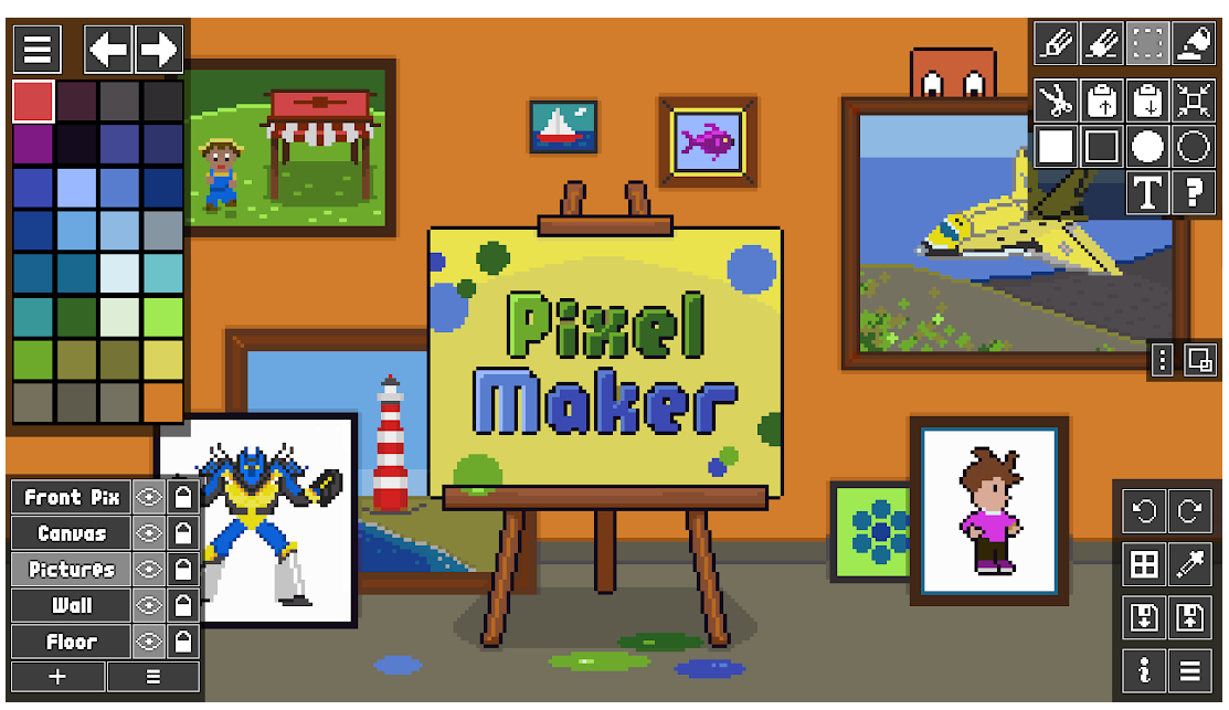 PixelMaker поможет с одинаковой лёгкостью создавать как простые, так и сложные пиксель-арты. Для этого здесь есть все необходимые инструменты.