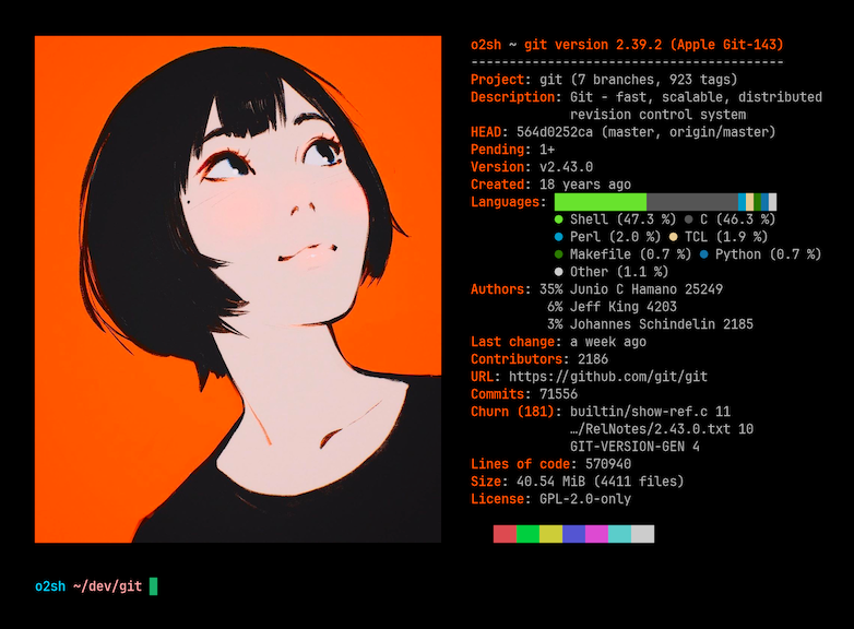 Ещё одна альтернатива Neofetch, которая вообще не имеет никакого отношения к вашей операционке. Она отображает информацию о Git-репозиториях.