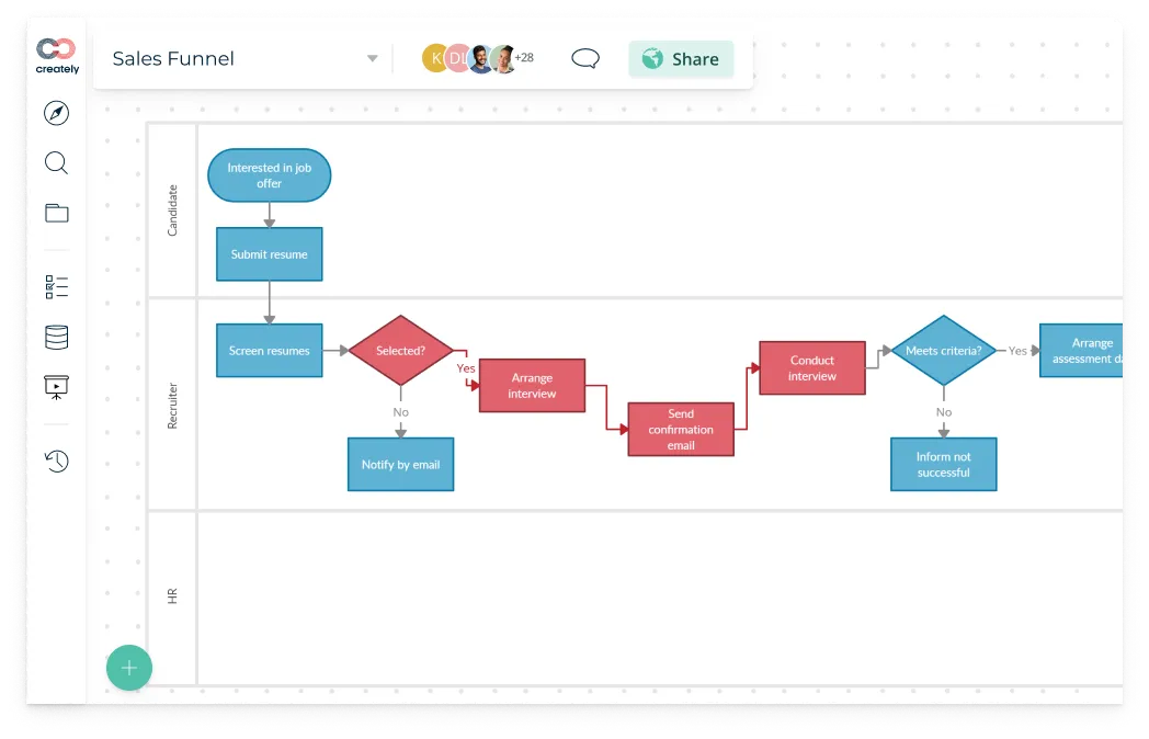 Как и в предыдущем случае, при работе с Creately не составит труда создать крутую блок-схему, а начать можно с одного из множества шаблонов. Также есть совместная работа и возможности для общения внутри сервиса. Есть интеграция со Slack, OneDrive, Google Диском, Confluence и Zapier.