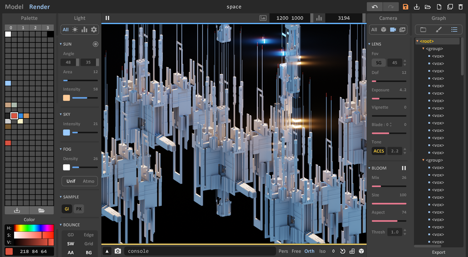 Это бесплатный редактор для создания воксельных моделей. Здесь есть все необходимые инструменты для работы с такой графикой. В комплекте есть мощный движок для рендеринга. Готовые модели можно экспортировать в формат obj.