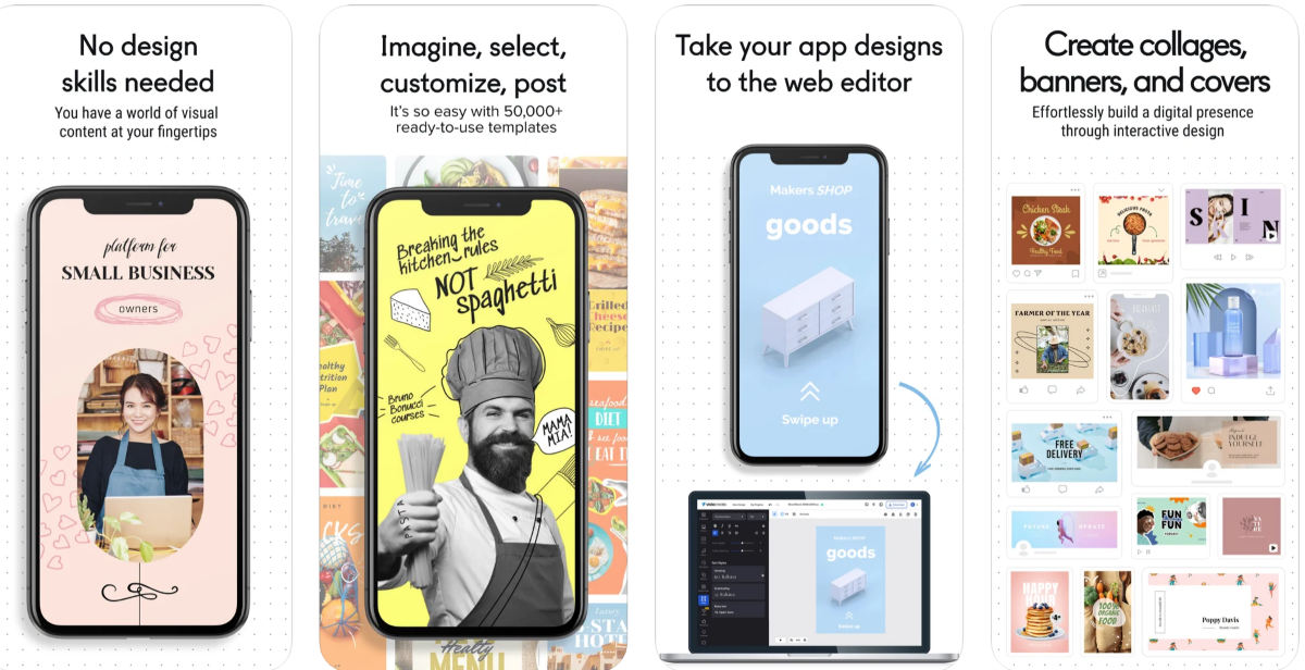 С помощью этого приложения можно создавать брошюры, памфлеты и инфографику. В наборе есть сотни шрифтов, элементов дизайна (формы, иконки, текст) и многое другое. Для работы доступно более 5 000 шаблонов.