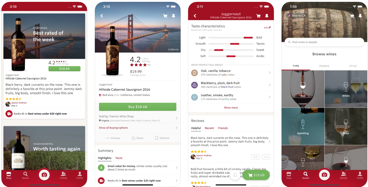 Это приложение, как и выше описанный Delectable, позволяет сравнивать два вина и просматривать лучшие предложения на них в интернете. Вы также можете просмотреть карту вин в ресторане, чтобы найти самый высокорейтинговый напиток в списке.