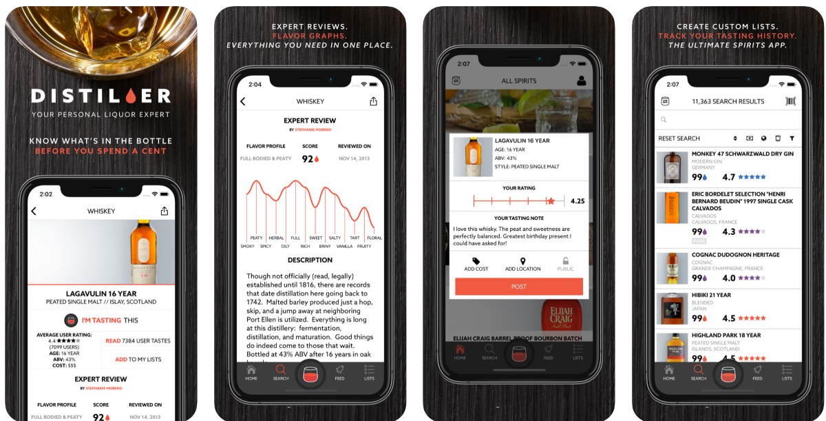 В 2014 году, когда приложение Distiller только появилось, оно было посвящено исключительно виски. В новой версии, выпущенной в прошлом году, появились обзоры, рекомендации и информация обо всех крепких алкогольных напитках.