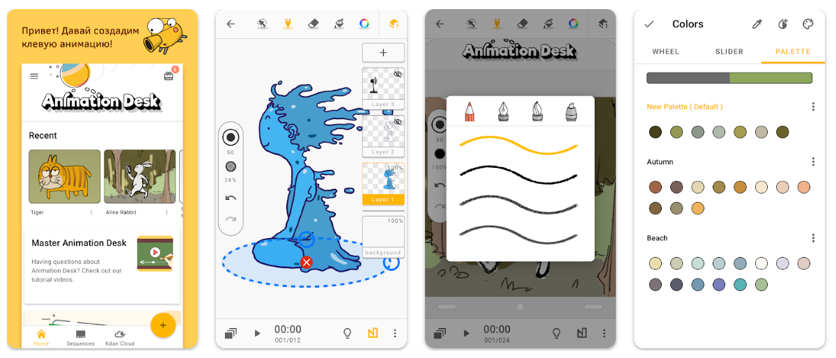 Здесь есть большая библиотека объектов и персонажей со скелетной моделью, из-за чего создание анимации ускоряется в разы. Можно создавать и собственных персонажей. Правда, приложение всё-таки рассчитано на детей, а не взрослых.