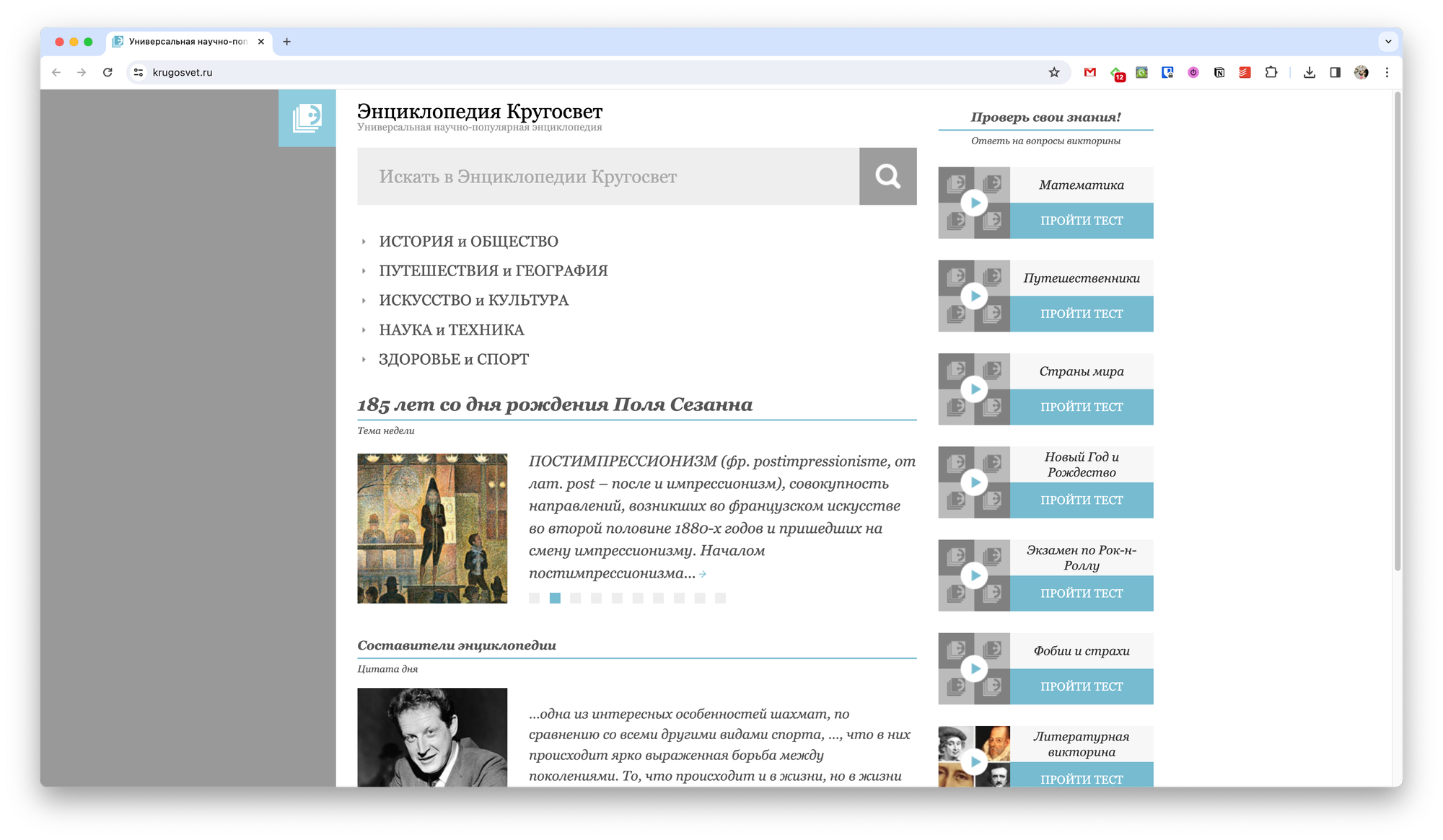 Российская энциклопедия с акцентом на образование и культуру. Основное внимание уделяется образовательным темам, что делает её полезной для студентов и людей, интересующихся образованием. Число статей неизвестно.