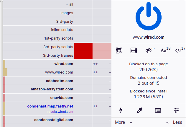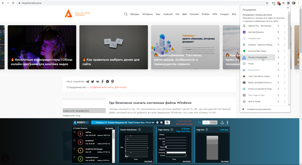 Примечательно, что при первом вашем посещении той или иной веб-страницы Ghostery допускает загрузку и рекламы, и трекеров. Далее вы уже сами решаете, насколько безопасен для вас данный интернет-ресурс. Есть возможность отключения отдельных типов рекламы и трекеров. В других блокировщиках такой функции нет.