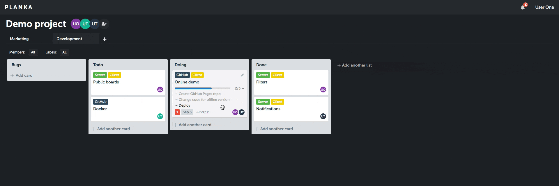 Основные функции Planka включают: создание досок Kanban, создание и редактирование карточек задач, использование тегов и меток для классификации задач, а также возможность добавления комментариев к задачам. Planka также поддерживает автоматическое обновление задач и уведомления о новых комментариях.