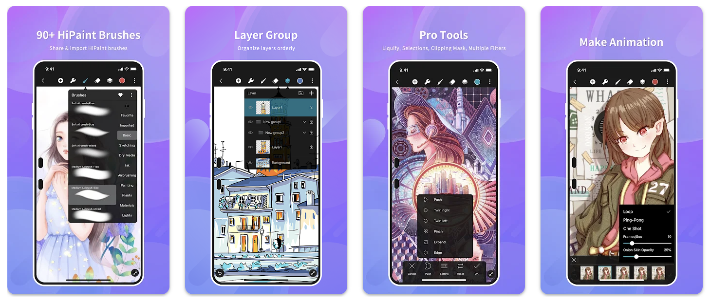 Многие любят это приложение за хороший набор инструментов для рисования комиксов и манги. Например, есть кисть G-pen, позволяющая делать тонкие и точные линии. А в Premium-версии вы получите ещё больше кистей для рисования манги.
