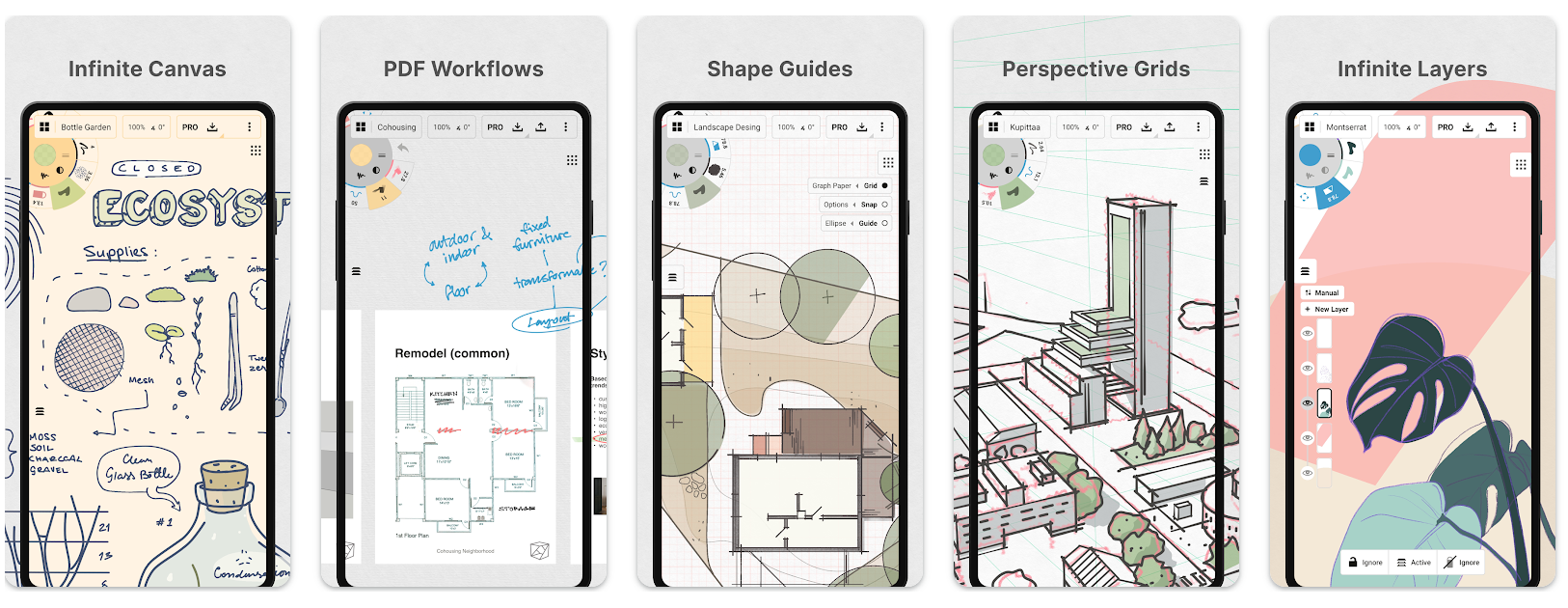 Concepts отлично подходит для создания технических рисунков. В нём есть сетки, измерительные инструменты и направляющие — они помогут вам легко нарисовать фигуры нужного размера, угла и длины.