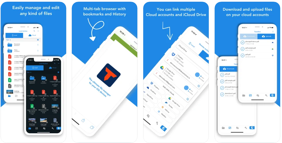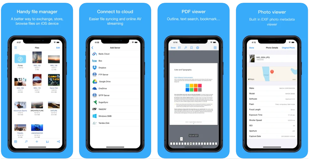 Ещё один бесплатный файловый менеджер для обмена, хранения и просмотра файлов на iOS-устройствах. С этим приложением у вас всегда под рукой будут ваши любимые облачные сервисы (iCloud, Google Drive, Dropbox, Box, OneDrive и др.) и серверы NAS/WebDAV/FTP/SFTP. Также оно без проблем открывает документы PDF, читает большинство аудио/видео форматов и поддерживает основные форматы сжатых файлов (ZIP, RAR, 7-zip, CBZ, CBR, TAR, BZ2, GZ).