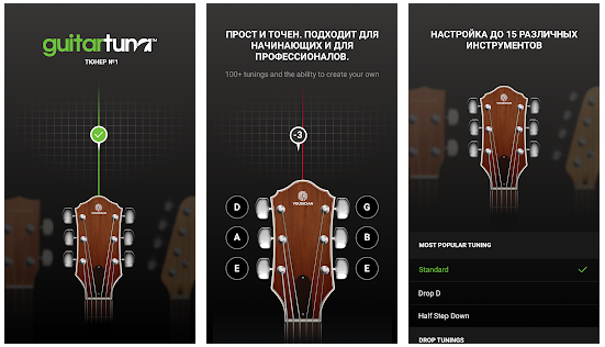 Guitar Tuna — лучшее приложение в своей области. Им легко пользоваться, а его бесплатной версии будет вполне достаточно начинающим. Для профессионалов есть недорогая Pro-версия с всякими интересными «примочками». Например, вы сможете настроить не только гитару, но и любые другие струнные инструменты, у которых есть гриф. Также вдобавок к этому вам дадут метроном и справочник основных аккордов.