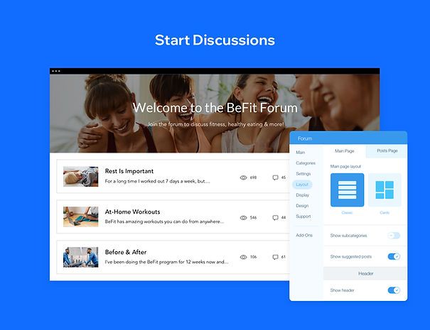 Поскольку Wix Forum является дополнением, для создания универсального сайта вы можете совмещать его с функциями других сервисов Wix.
