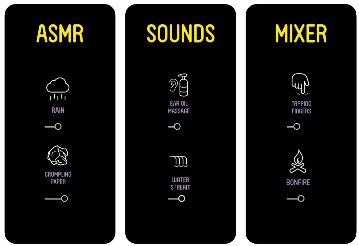 Это приложение рассчитано не только на ценителей ASMR, но и на тех, кому сложно заснуть, и любителей медитировать. Здесь есть видео и аудио версии ASMR более чем от 1500 авторов.
