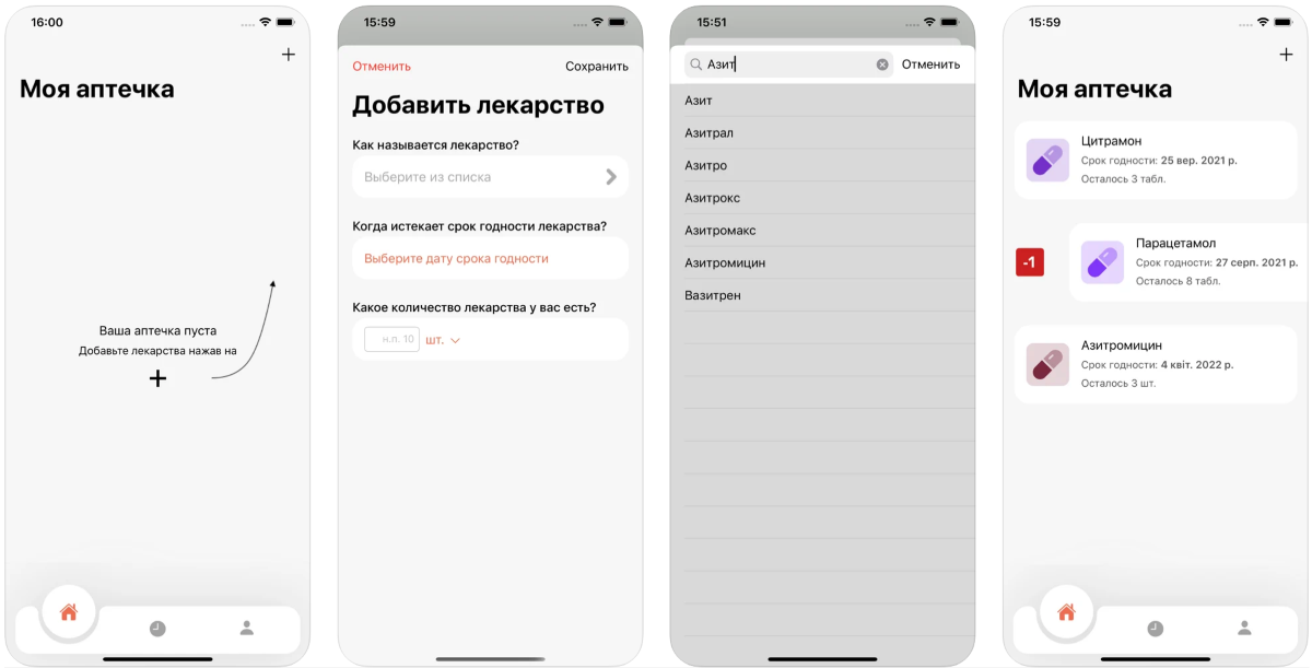 Приложение «Моя аптечка» помогает не просто вести учёт всего домашнего лекарственного запаса, но и правильно определять аналоги. Возможно отыскать препарат по симптомам заболевания.