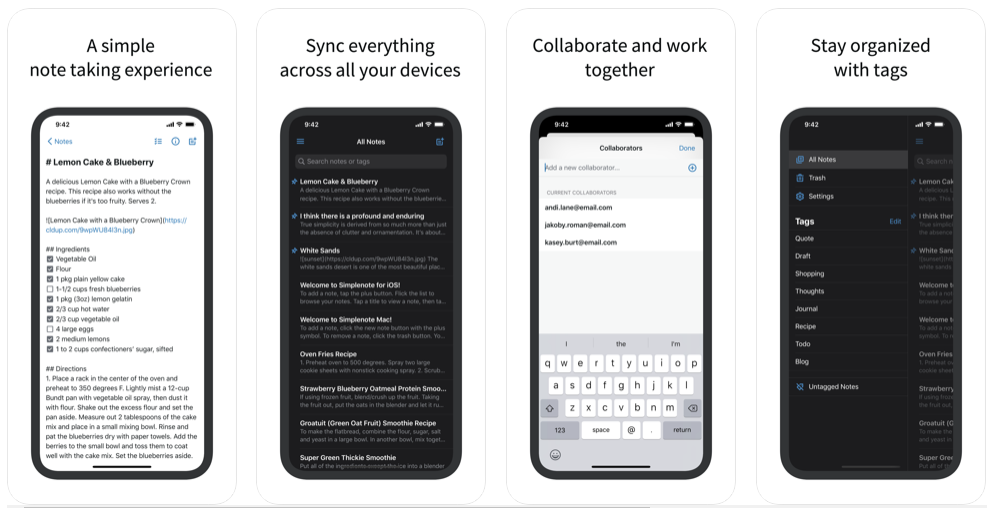 Какова основная характеристика приложения Simplenote, — несложно догадаться из его названия. Эта максимально простая программа для создания заметок доступна для всех основных платформ. Приложение позволяет создавать текстовые заметки, которые занимают очень мало места на вашем устройстве.