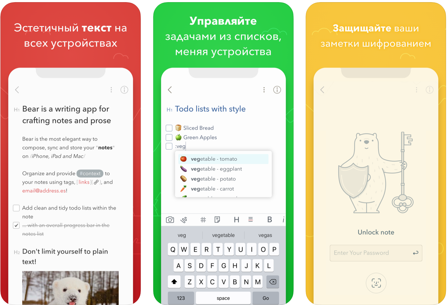 Bear — популярное приложение для работы с заметками с поддержкой Markdown и шифрования. Здесь можно легко организовать информацию. Мощные инструменты редактирования помогут записать всё именно так, как вам нужно.