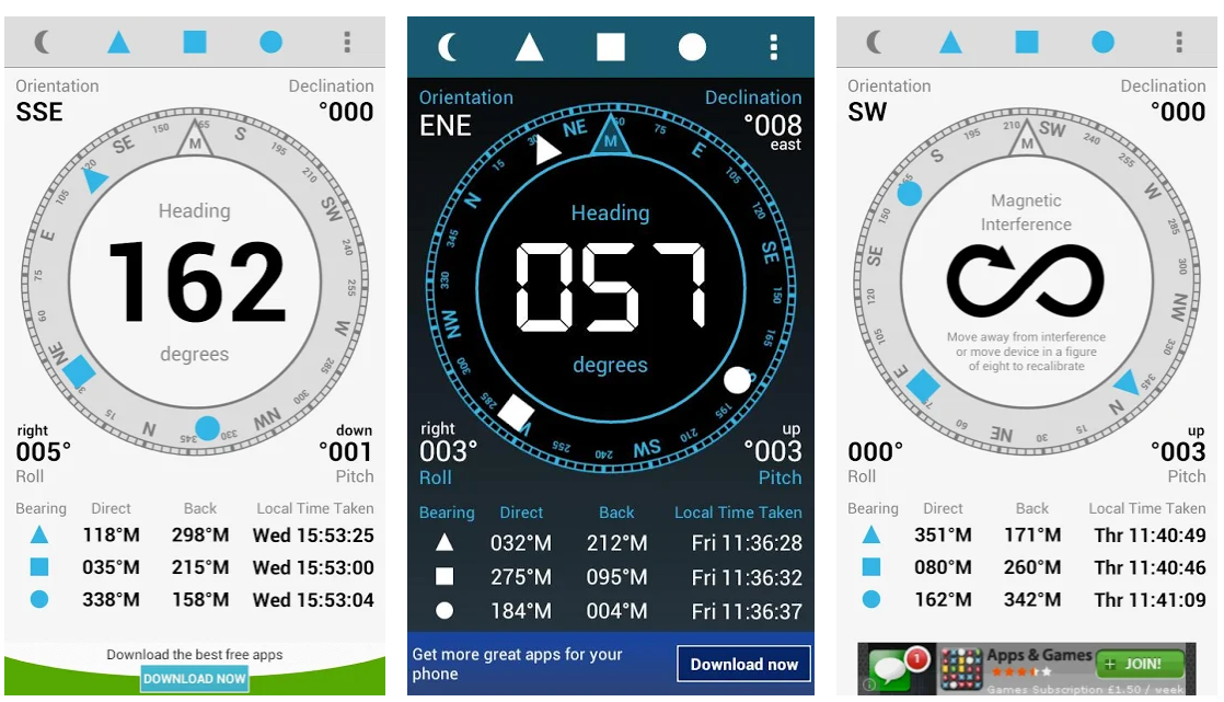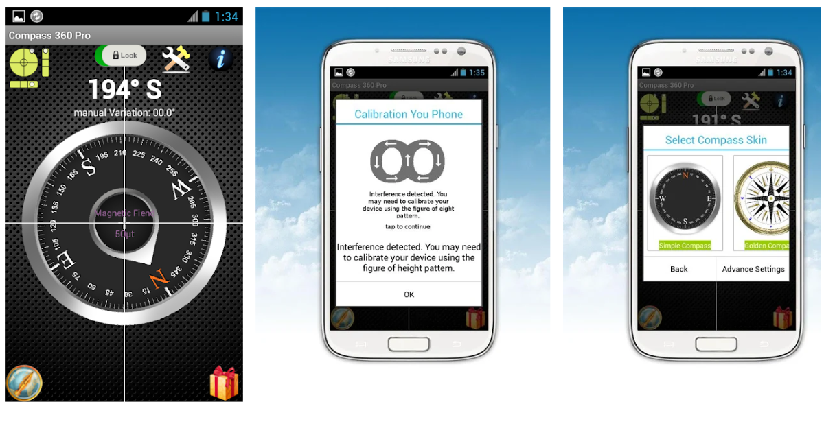 Кроме того, прога может определить, есть ли магнитные помехи, и отлично подходит для ориентирования как на суше, так и на воде.