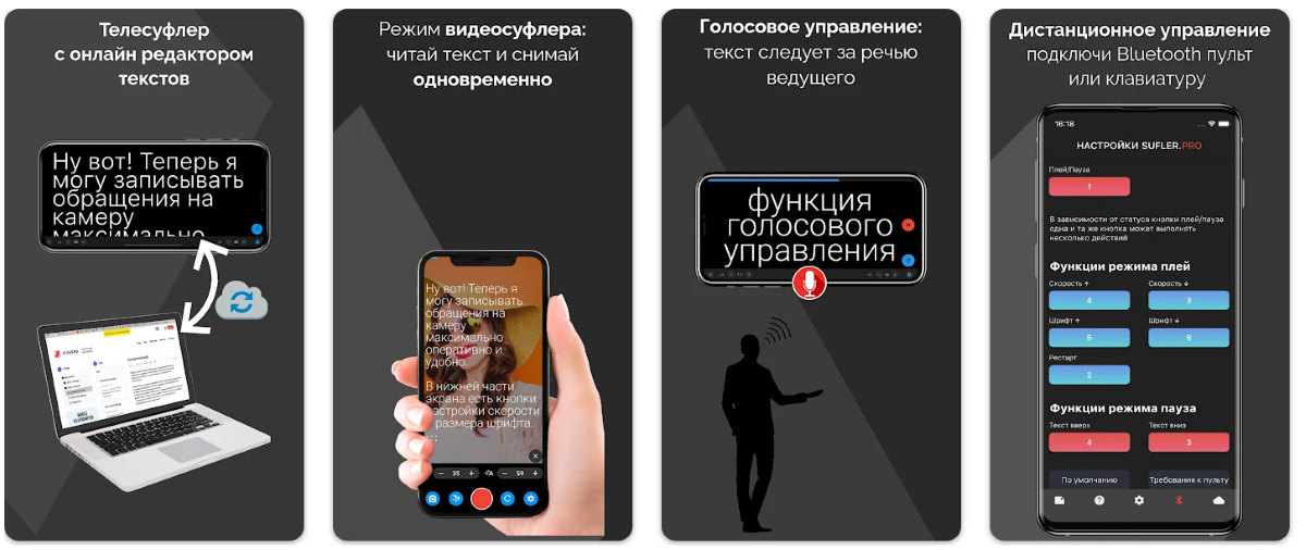 В этом приложении вы найдёте уникальные фишки, типа голосовой активации суфлёра, поддержки пультов ДУ и онлайн-редактора текста. Конечно, и про базовые возможности не забыли. Можно регулировать размер и скорость текста.