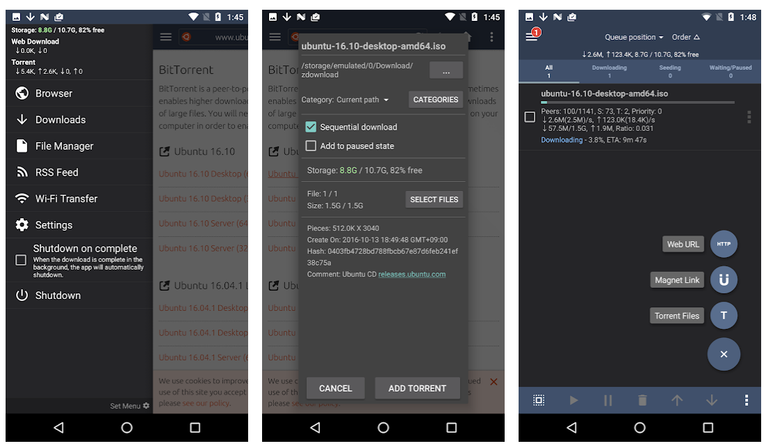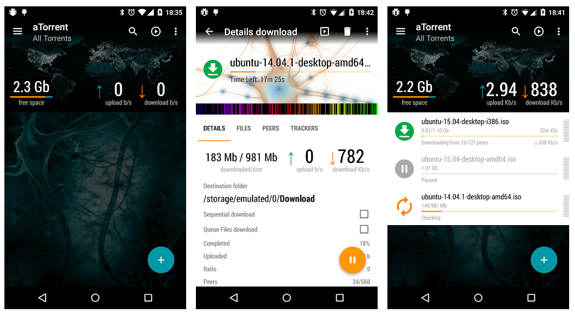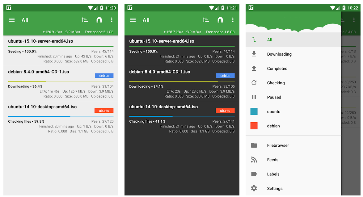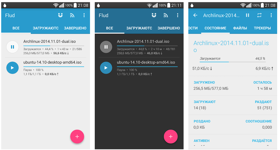 Ещё один «мускулистый» претендент на звание самого крутого торрент-клиента под Android. Если в предыдущем варианте был небольшой недостаток с дизайном, то тут его нет — идеальный Material Design c поддержкой тёмной темы. Тут есть все инструменты здорового торрент-клиента (и даже больше). IP-фильтрация, работа с прокси, скачивание файлов с несколькими файлами внутри, расстановка скорости скачивания для разных файлов. И самое главное — то, что в бесплатной версии открыты все функции. В платной версии вы лишь избавляетесь от рекламы. Стоит, кстати, недорого: всего лишь 120 рублей. Flud более чем достоин этого доната.
