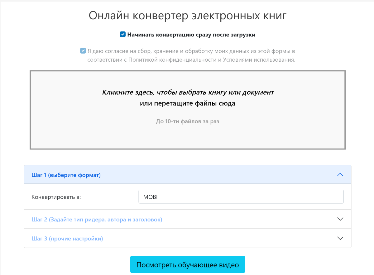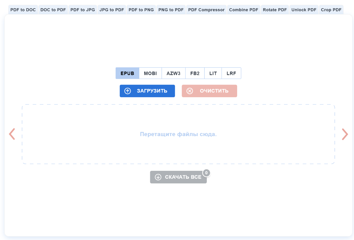 Совершенно бесплатный онлайновый сервис для массовой конвертации электронных книг. В ряду поддерживаемых форматов есть EPUB, MOBI, PDF, AZW, TXT и прочие. За один заход можно конвертнуть до десяти книг.