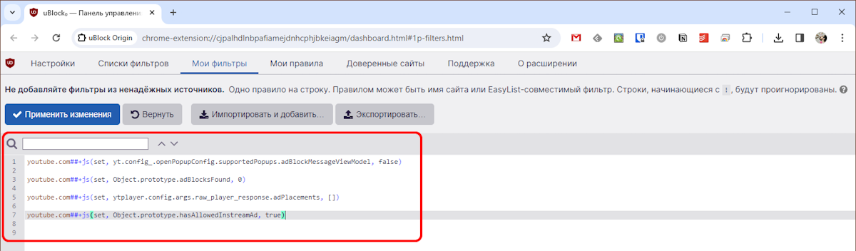 И в конце перейдите по этой ссылке, разрешите запуск скрипта и добавьте фильтры в ваш блокировщик рекламы.