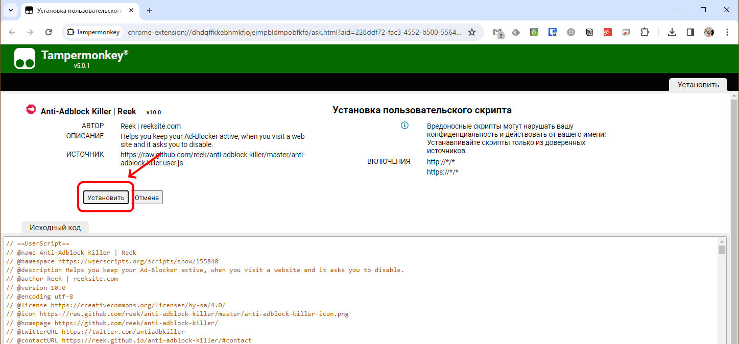 Затем перейдите по этой ссылке и установите скрипт.