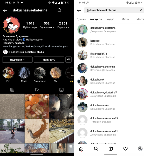 Не стоит забывать, что аккаунта может не быть в поиске, если он удалён или пользователь вообще сменил юзернейм.