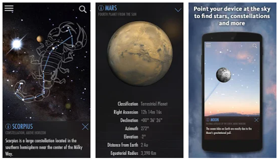Если вы интересуетесь звёздами, созвездиями, планетами, кометами, летательными космическими аппаратами, — одним словом, всем, что связано с космосом, то Stellarium — это приложение, которое даст вам всю необходимую информацию. Stellarium Mobile Sky Map имеет простой, даже минималистичный интерфейс, который отлично подходит для начинающих астрономов-любителей и детей, и включает 3D-изображения основных планет Солнечной системы и их спутников.