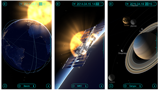 Вы также можете увидеть реалистичные 3D-модели космических кораблей, искусственных спутников и межпланетных станций, отслеживать траекторию их полёта, просматривать фотографии, сделанные во время полёта. Астрономический календарь включает в себя различные небесные события, такие как солнечные и лунные затмения, фазы Луны, а также документирует историю космических путешествий. В приложении имеется функция, позволяющая вам делиться своими открытиями с друзьями в Facebook. Premium-версия стоит 3$.